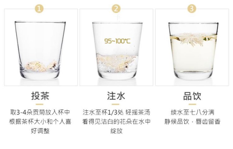 贡菊要放在阴凉干燥的地方,用铝箔袋密封起来,避免返潮发霉,每次使用时尽量不要用手直接抓,可以用取茶棒取用或者手持茶叶容器倒出来。