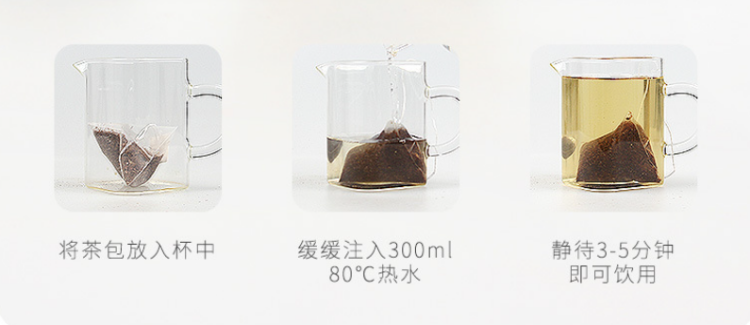 茶具选择玻璃杯、瓷杯为佳,茶水比1:50,水温90~100℃,茶水饮至1/3处即可续水,一般冲泡三次。