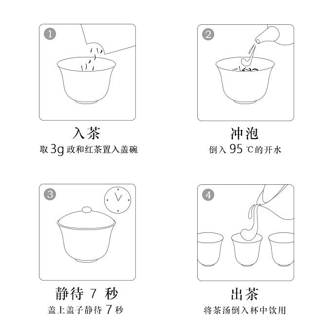 茶具选择白瓷盖碗为佳,茶水比1:20,水温95~100℃,注水后5s出汤,可冲泡5~7次。